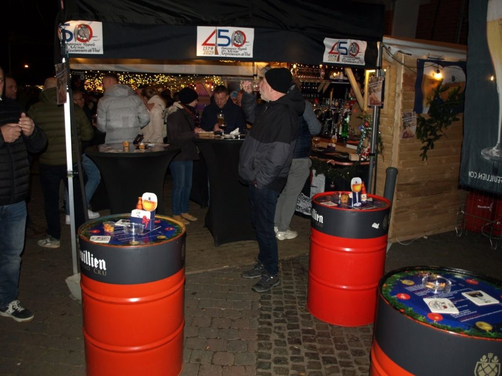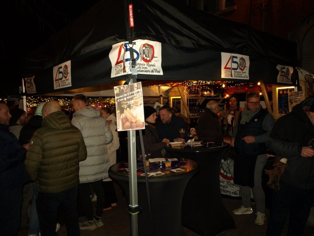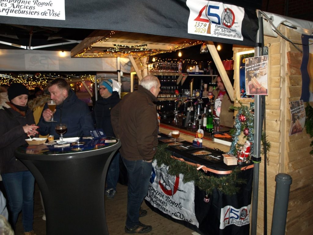 du chalet de l’Arquebuse : le temps, froid mais sec, a favorisé le petit marché de Noël visétois et notre chalet de l’Arquebuse a attiré en décembre de nombreux amateurs pour nos spécialités de bières Saint-Feuillien et pour nos fameuses croquettes d’oie.